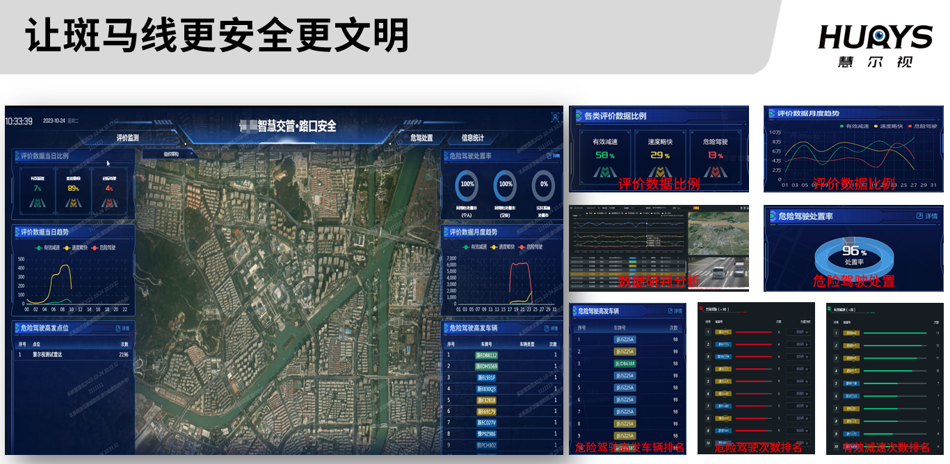系统以毫米波雷达为焦点,搭建雷视融合斑马线礼让评级系统,对经过斑马线的车辆车速变化进行检测,同时对未减速车辆进行抓拍,能够全天候全时段监测斑马线前的来往车辆是否礼让行人,能够从多级防控手段让“斑马线越发宁静,人民生命越发保障”。
